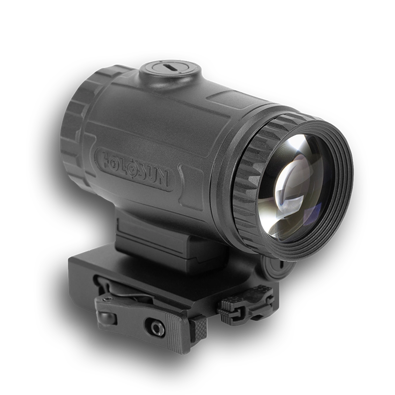 Holosun magnifiers deliver instant magnification without sacrificing speed. Flip-to-side designs built for seamless pairing with red dot optics.
