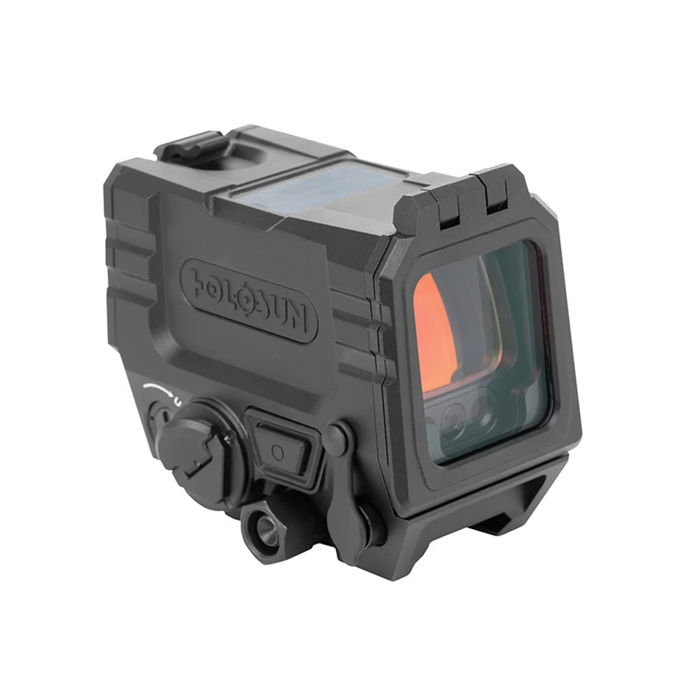 A 1.26 × 0.98 viewing window and Holosun’s Multi-Reticle System provide fast acquisition and adaptable sight pictures, while coaxial dot and laser alignment, Solar Failsafe, and Shake Awake keep the system efficient, simple to zero, and ready when it matters.